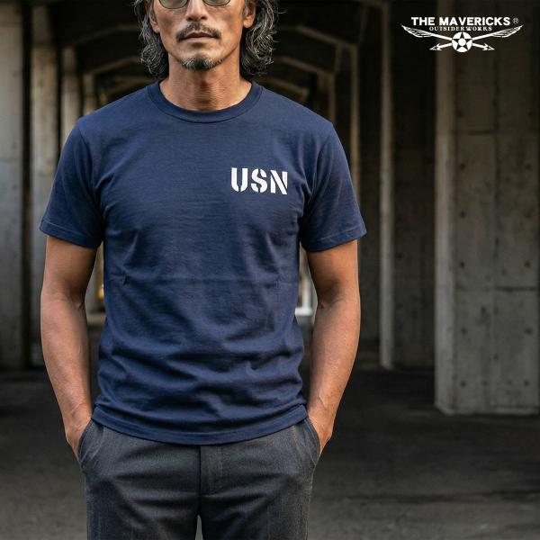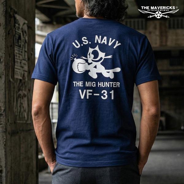 Tシャツ メンズ 半袖 ミリタリー アメカジ 米海軍 黒猫 CAT モデル MAVERICKS ブランド 紺 ネイビー
