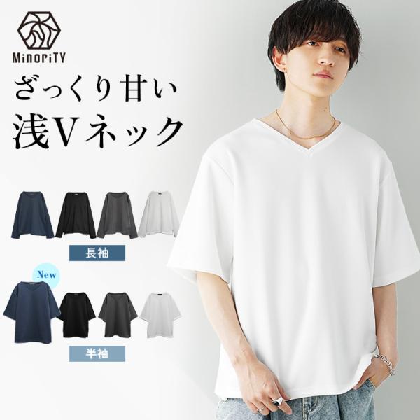 tシャツ vネック メンズ 長袖 速乾 無地 ロンT 大きいサイズ 白 黒 オーバーサイズ ブランド 半袖 インナー マイノリティ minority