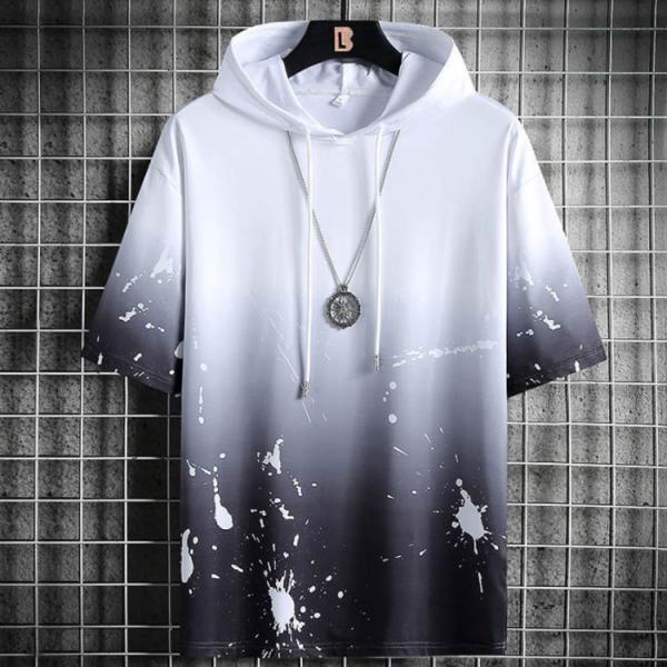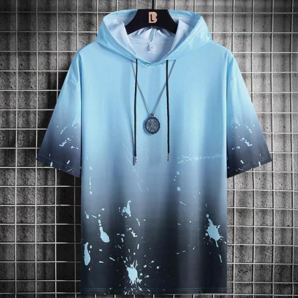 半袖パーカー メンズ プルオーバー パーカー 半袖tシャツ 切り替え スポーツ 半袖パーカー 夏 ひんやり フード付き 接触冷感 吸汗速乾 大きいサイ