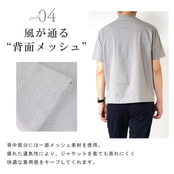 Tシャツ メンズ 半袖 モックネック クルーネック 夏服 セットアップ ジャケット インナー 接触冷感 速乾 白 黒 グレー ビジネス クールビズ 父の日