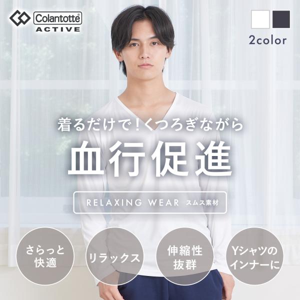 Luanna Jena × コラントッテ リラクシングウェア 吸汗速乾 メンズ 長袖 Vネック ロンT ストレッチ 9分袖 プレゼント 誕生日 ギフト 男性用 インナーシャツ