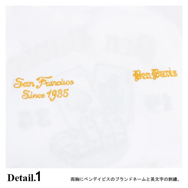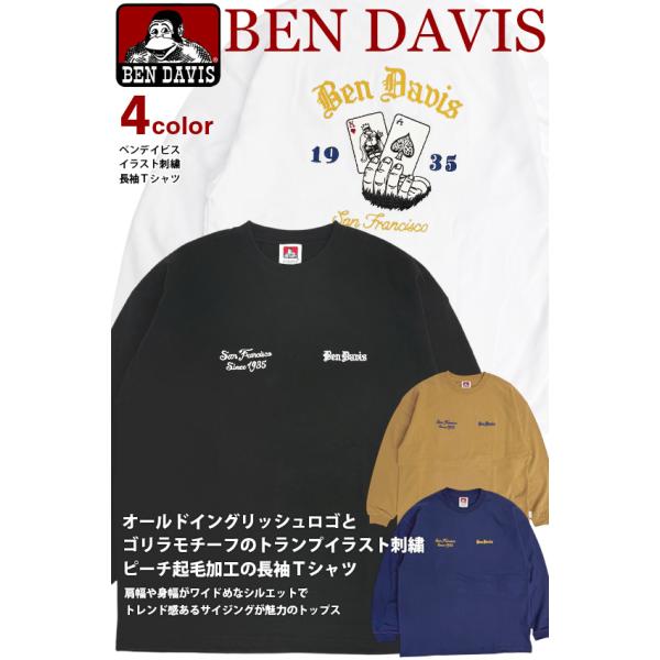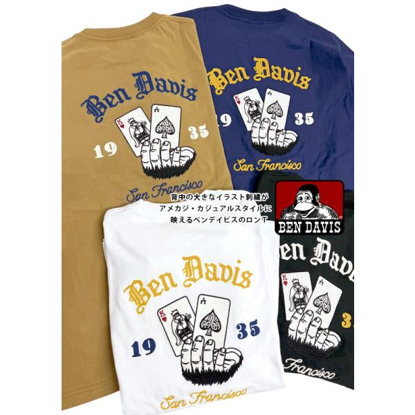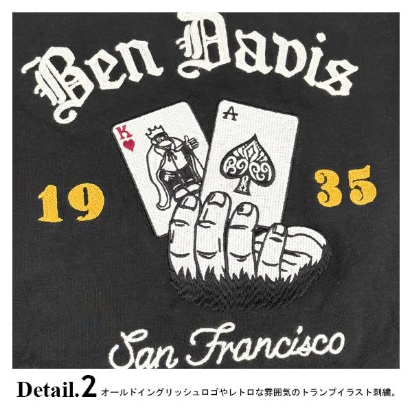 BEN DAVIS Tシャツ ベンデイビス オールドイングリッシュ ロゴ トランプ柄 刺繍 長袖Tシャツ メンズ ロンT ピーチ起毛 BEN-2172