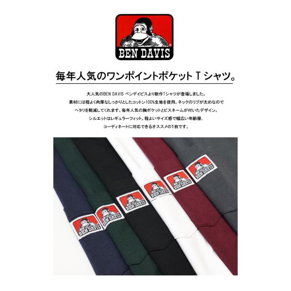 BEN DAVIS ベンデイビス ピスネーム 胸ポケット 半袖Tシャツ 半T レギュラーフィット メンズ ベンデビ ゴリラ 25580000