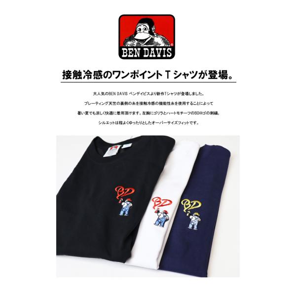 BEN DAVIS ベンデイビス 接触冷感 ワンポイント刺繍 半袖Tシャツ ビッグシルエット 半T メンズ ベンデビ ゴリラ 26580017