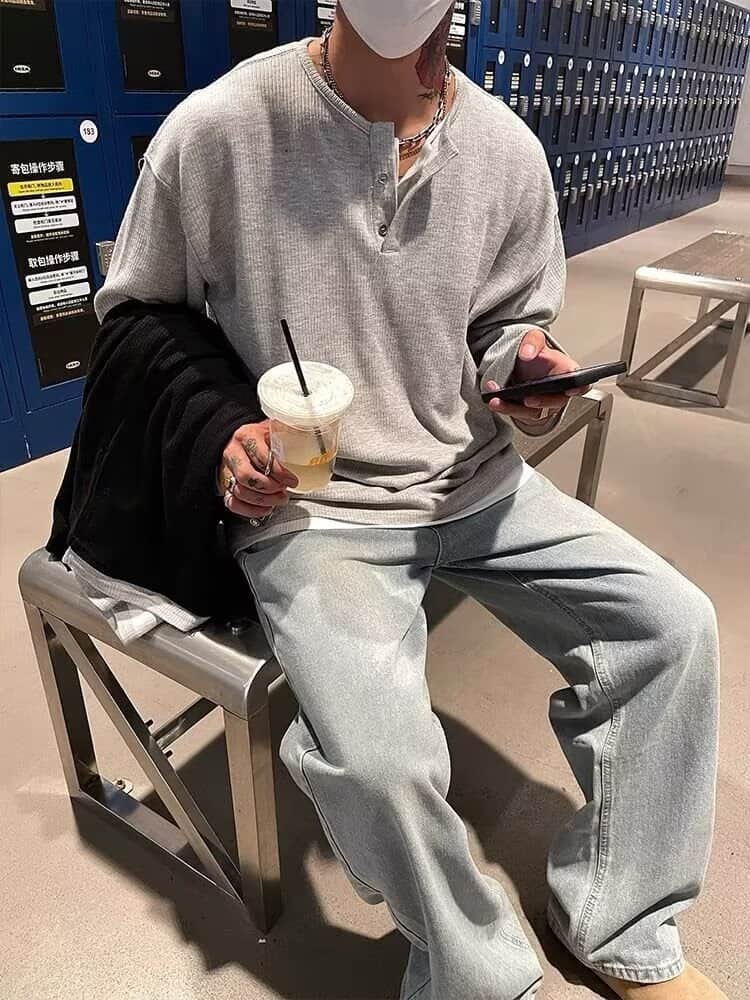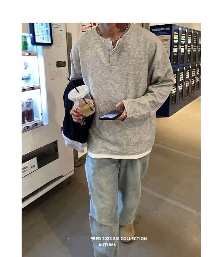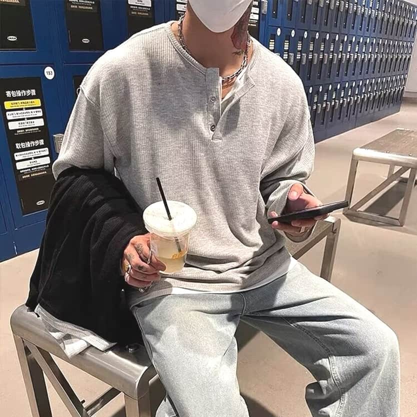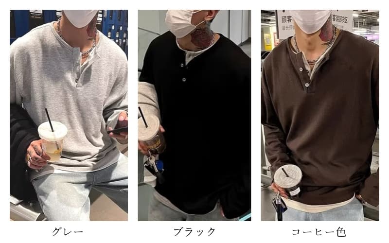 コーデュロイ tシャツメンズ 長袖 ヘンリーネック 重ね着風 レイヤード風 無地 カットソー インナー トップス おしゃれ きれ