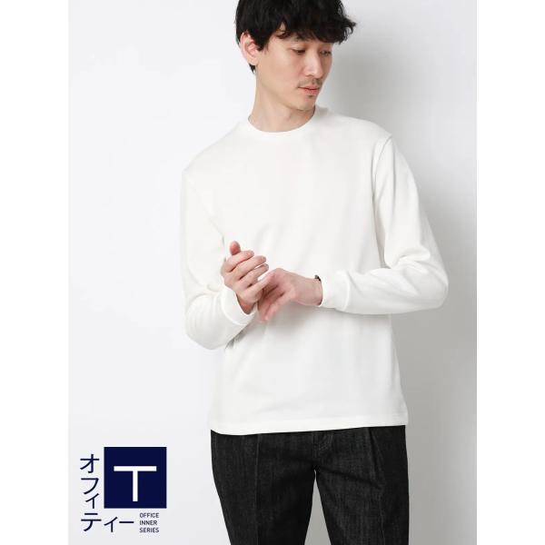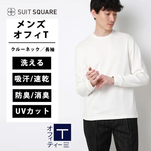 【スーツスクエア】メンズ オフィT Tシャツ 長袖 ウォッシャブル プレーティング鹿の子 速乾 無地 ホワイト系