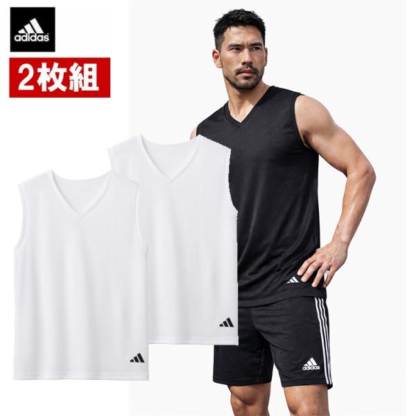 アディダス スリーブレス インナーシャツ メンズ 2枚組 Vネック 吸汗速乾 メッシュ ノースリーブ adidas スポーツ肌着 男性用