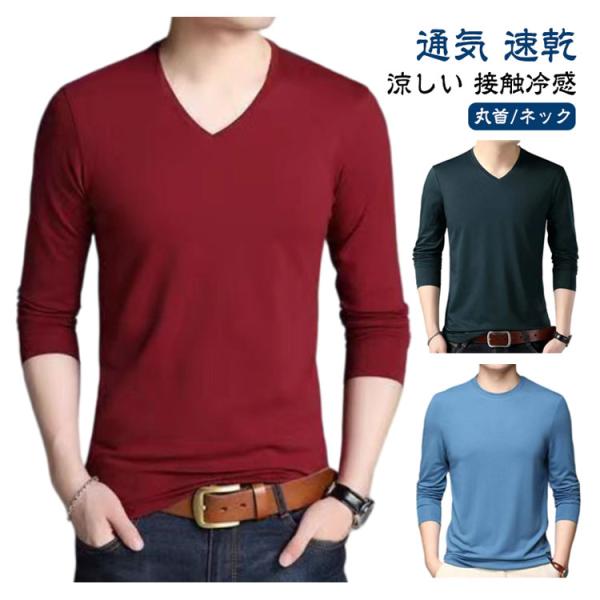 接触冷感 アンダーシャツ 夏 インナーシャツ 長袖 インナーシャツ 速乾 作業 スポーツ 通気 Vネック 吸汗 インナーウェア 丸首 サッカー トレー
