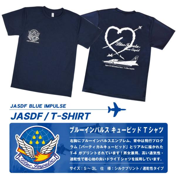 航空自衛隊 ブルーインパルス キューピッド ドライ Tシャツ ネイビー 空自 自衛隊 BlueImpulse T-4 エンブレム ロゴ マーク 速乾 夏 半袖 DRY グッズ アイテム