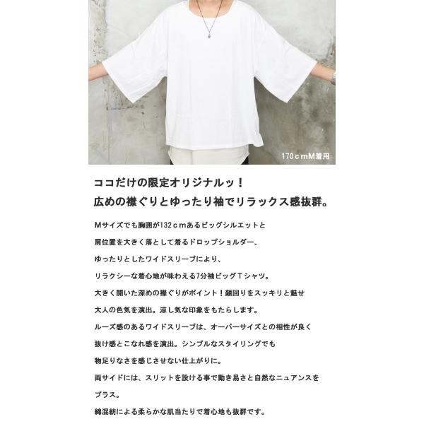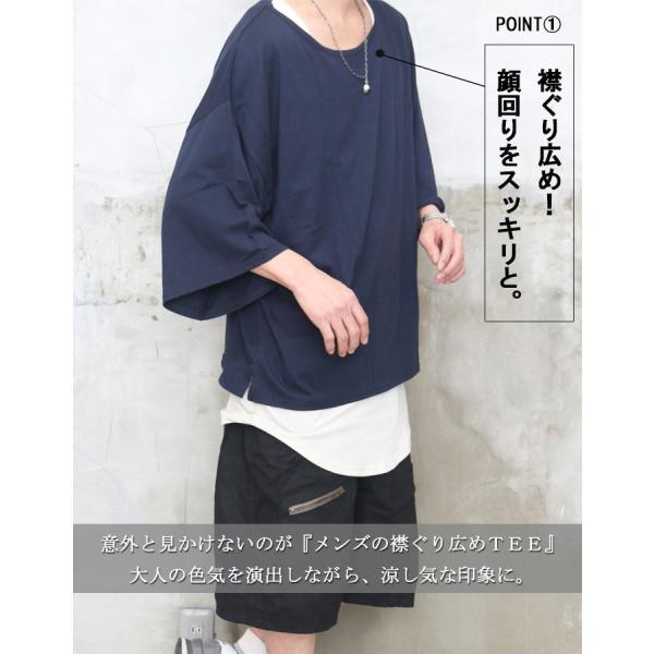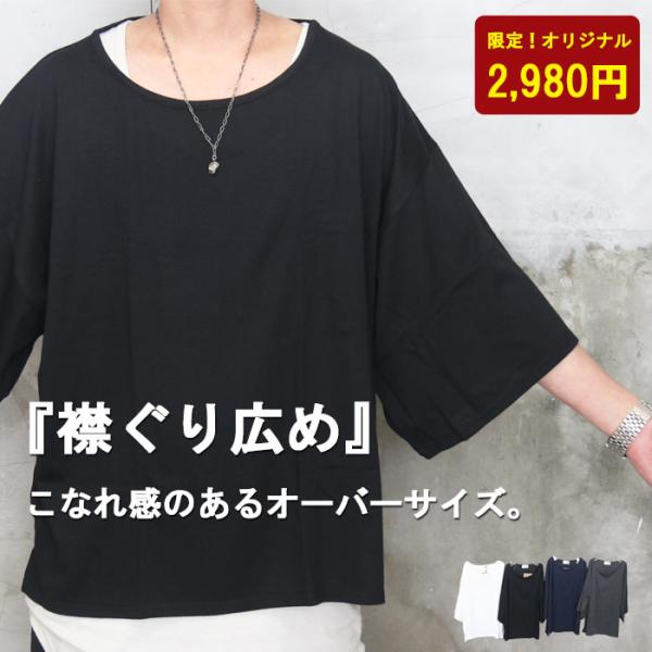 7分袖ビッグTシャツ メンズ 首元 広い tシャツ 襟ぐり 広め ボックスTシャツ メンズファッション [M便 1/1] ワイドスリーブ Tシャツ 7分袖 8分袖 半袖