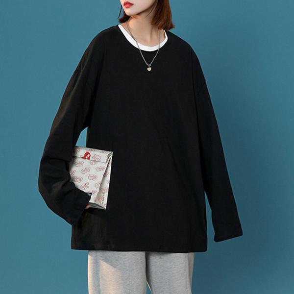 ゆったり tシャツ 長袖tシャツ 大きいサイズ 安い おしゃれ Tシャツ カットソー レディース メンズ 男女兼用 ユニセックス トップス ラウンドネック