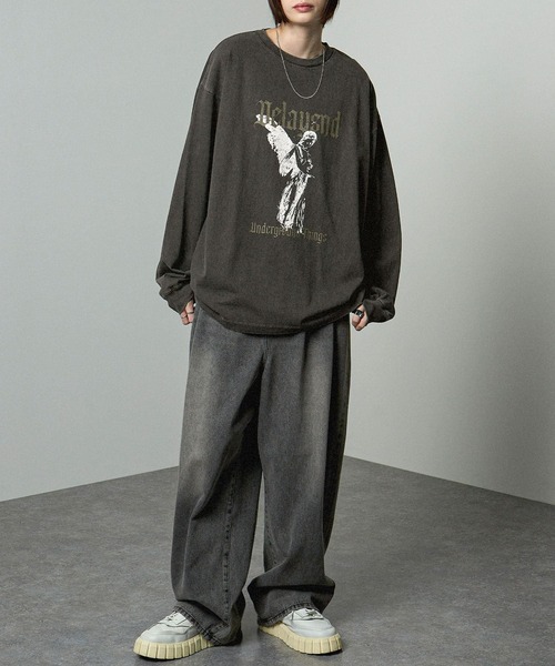 tシャツ 「Alfred Alex」ヴィンテージメイクデザイン ビッグピグメントプリントTシャツ ロンT メンズ レディース