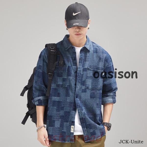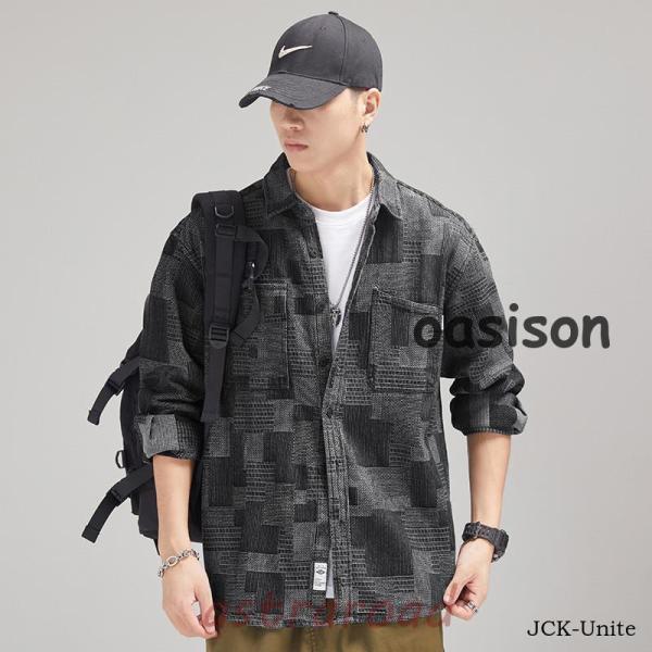 デニムシャツ メンズ 長袖 アメカジ チェック柄 カジュアル 開襟 ジャケット コート 柔らか ゆったり 大きいサイズ おしゃれ ストリート系 上品