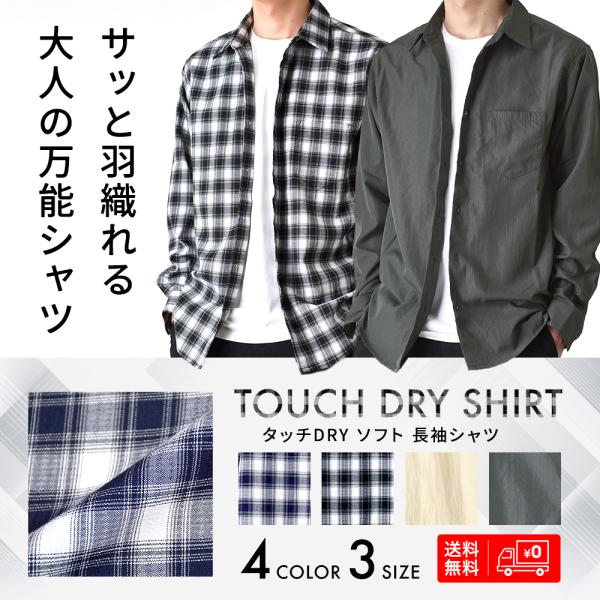 タッチDRY 長袖シャツ レーヨン メンズ 無地 チェック 開襟シャツ カジュアルシャツ Yシャツ ゆったり 速乾 軽やか 羽織り 通販Y