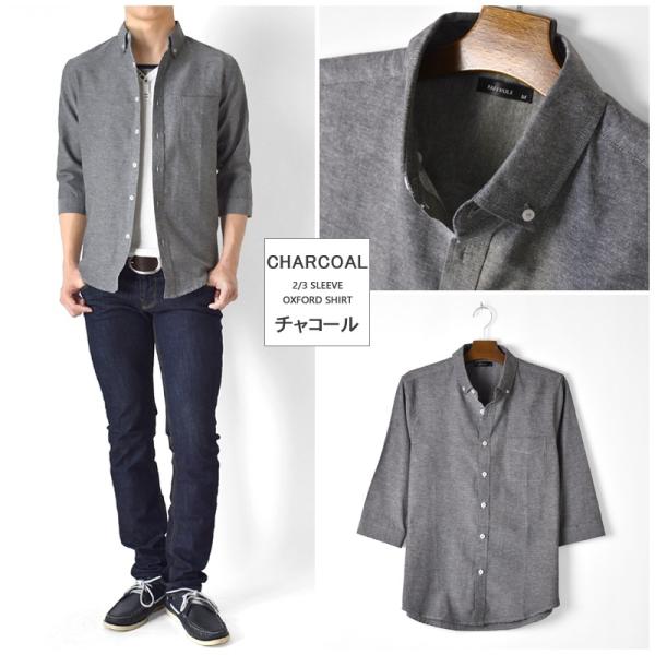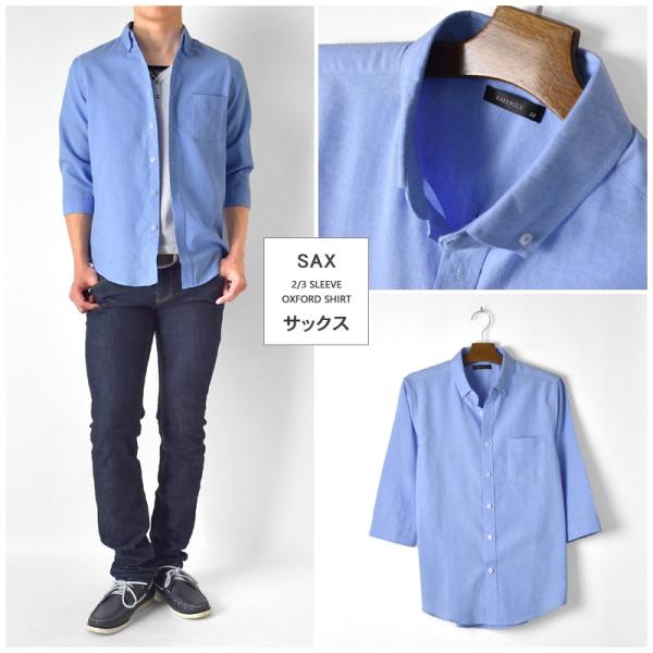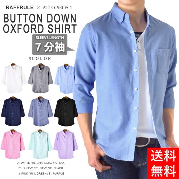 シャツ メンズ オックスフォードシャツ ボタンダウン 7分袖 セール コットン 混 綿 混 ワイシャツ ビジネス 送料無料 父の日 通販MC《M1.5》