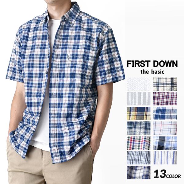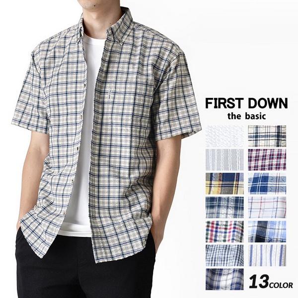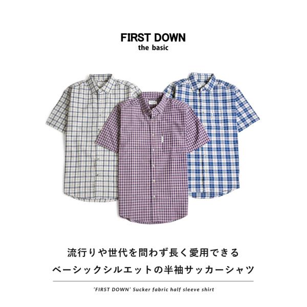 シャツ メンズ 半袖 サッカー素材 ファーストダウン FIRSTDOWNthebasic 送料無料 通販Y