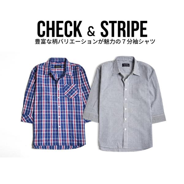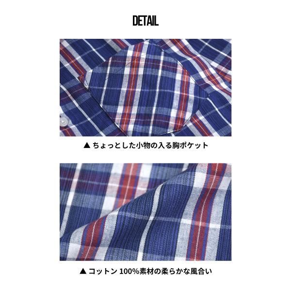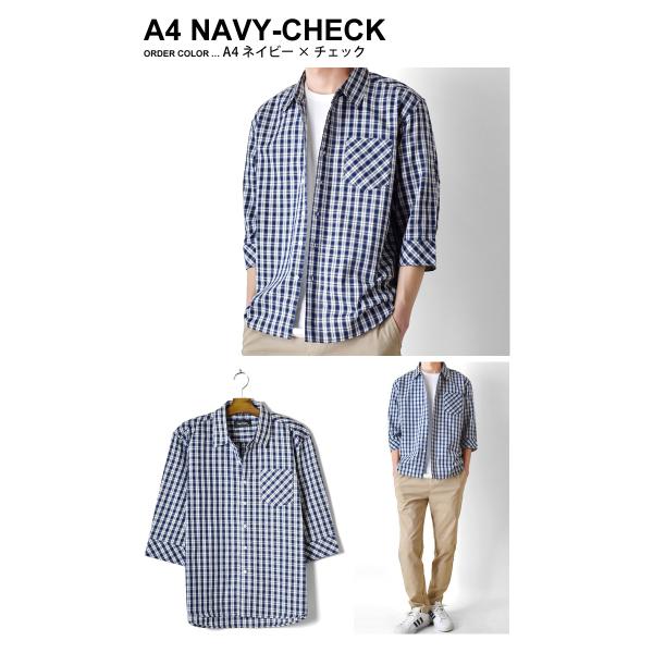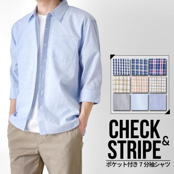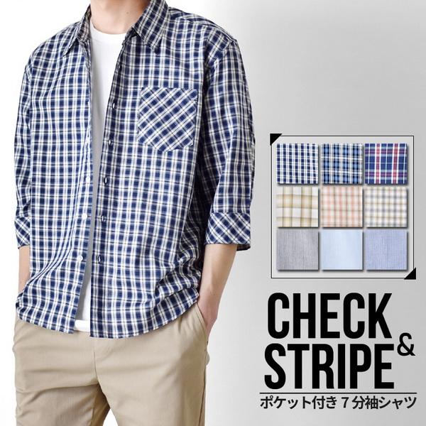チェックシャツ メンズ 七分袖 ポケット付き レギュラーカラー 綿100% さらっと快適 春 夏 送料無料 通販Y