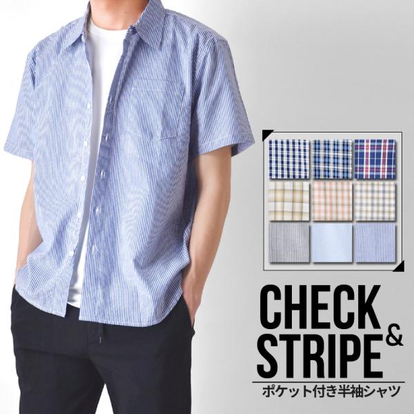 チェックシャツ メンズ 半袖 綿100% レギュラーカラー ポケット付き 涼しい 夏シャツ 大きいサイズ対応 送料無料 通販Y