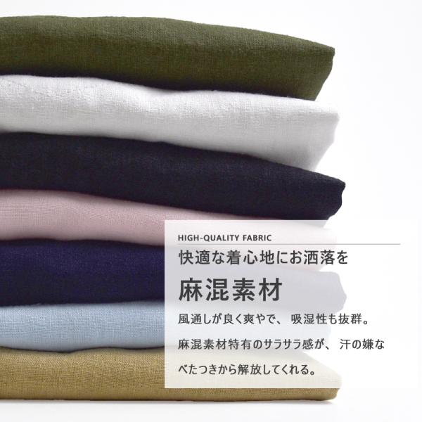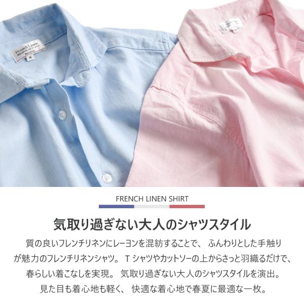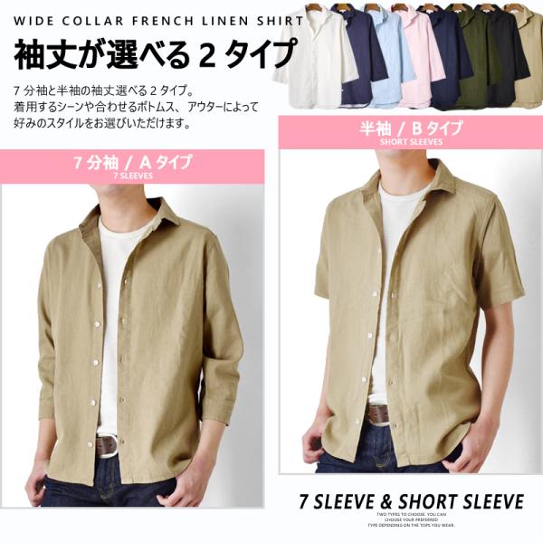 フレンチリネン混 リネンシャツ レーヨン混 カジュアル シャツ 清涼感 ストレッチ メンズ 7分袖 半袖 麻 送料無料 父の日 通販MC《M1.5》