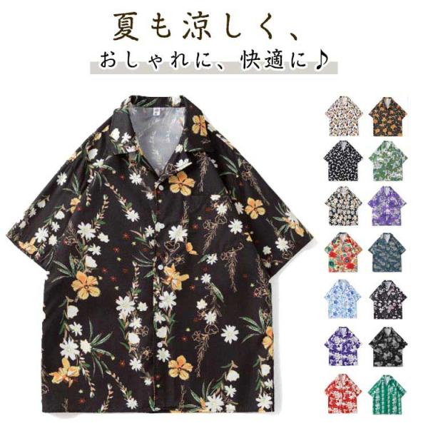 アロハシャツ メンズ 半袖 アロハシャツ 総柄 ポケット ハワイアン 半袖 シャツ 夏 祭 海 アウトドア ボタニカル 花柄 開襟シャツ オープンカ
