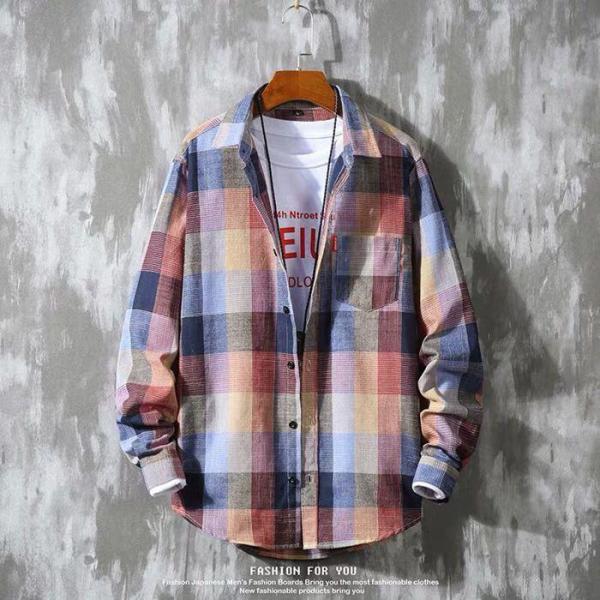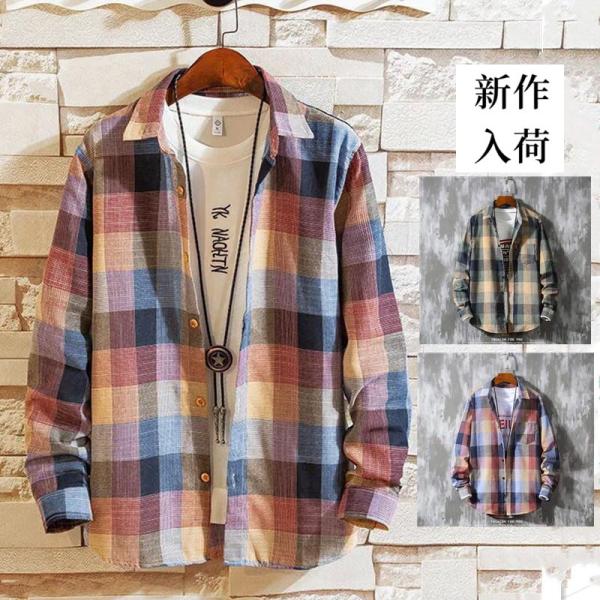 チェックシャツ ネルシャツ メンズ 長袖シャツ 配色 秋 カジュアル トップス お兄系
