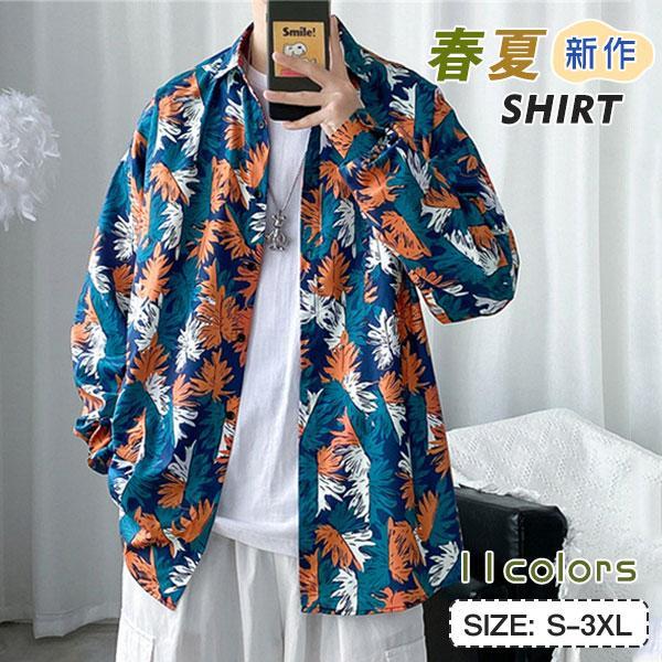 シャツ 長袖 メンズ アロハシャツ カジュアルシャツ 折り襟 花柄 春服 開襟 薄手 ゆったり お兄系 旅行 柔らかい 20代 プレゼント 新作