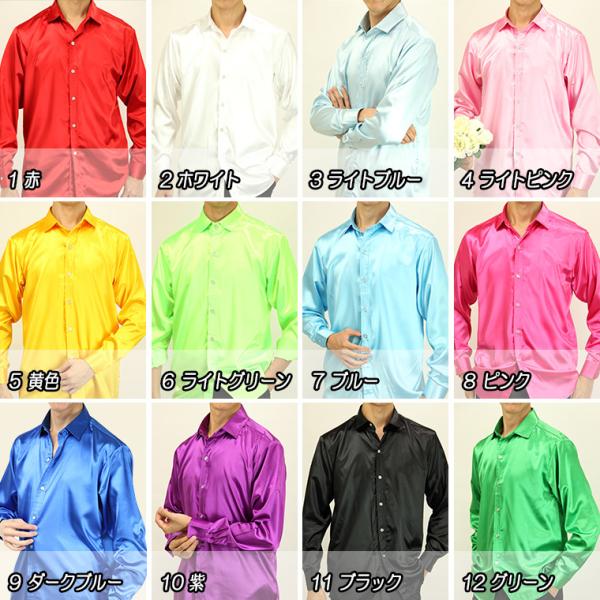サテンシャツ ストレッチ生地 12色 XXS〜3Lサイズ 伸縮性あり サテン生地 ワイドカラー ステージ衣装 ダンス衣装 舞台衣装 27sh05el