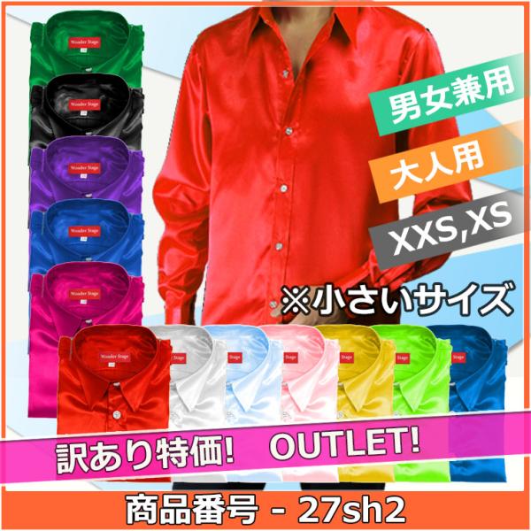 サテンシャツ 訳あり 12色 XXS,XSサイズ サテン生地 ステージ ダンス 舞台 忘年会 新年会 合唱 吹奏 カラオケ衣装 ライブ カフスボタン非対応