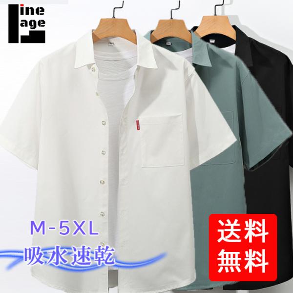 カジュアルシャツ 半袖 メンズ 夏 白 黒 大きい 無地 薄手 ぴったり 速乾 30代 40代 50代 ゆったり