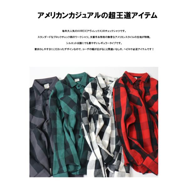 AVIREX アヴィレックス 長袖 ブロックチェック ワークシャツ 長袖シャツ チェックシャツ メンズ アビレックス 送料無料 6125137