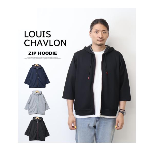 LOUIS CHAVLON ルイシャブロン 裏ボーダー 7分袖 ジップパーカー 半端袖 メンズ 羽織り 5277-2656