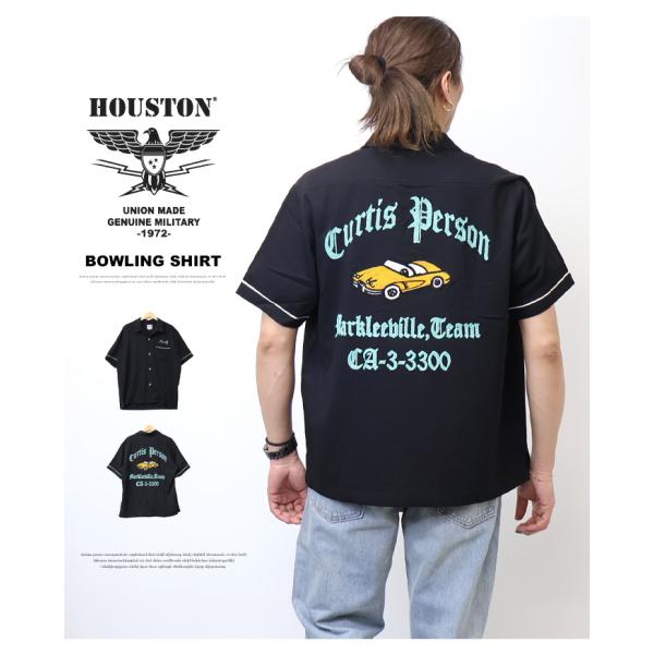 HOUSTON ヒューストン ボーリングシャツ 半袖シャツ CAR オープンカラーシャツ ボウリングシャツ 刺繍 送料無料 41304