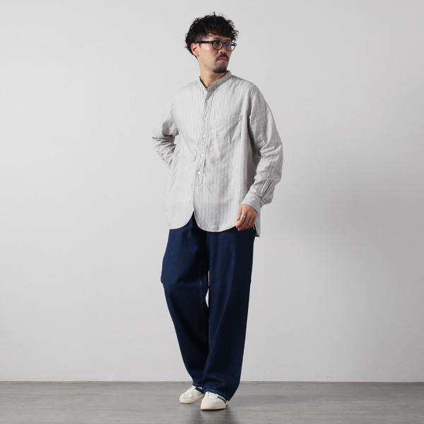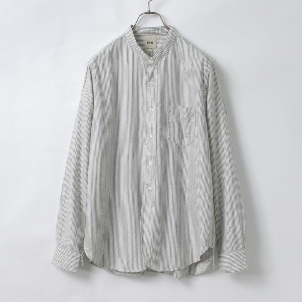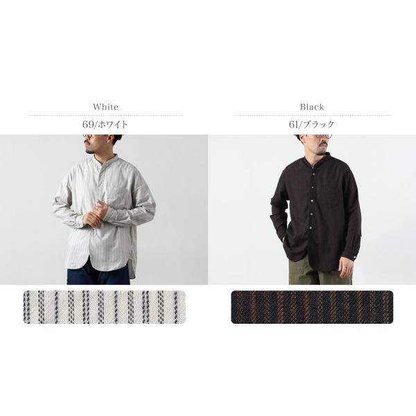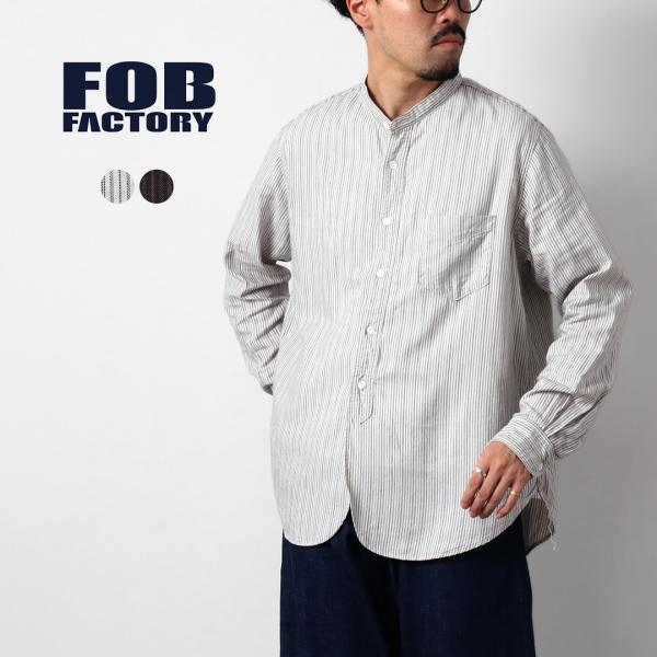 FOB FACTORY(F.O.Bファクトリー) F3511 バンドカラーシャツ / 長袖 スタンドカラー ストライプ トップス メンズ 柄シャツ 日本製