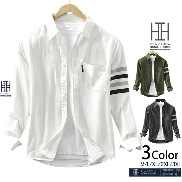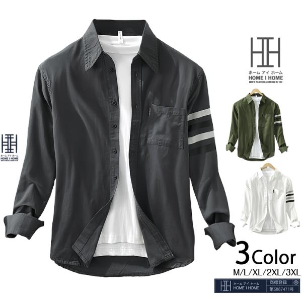 カジュアルシャツ シャツ メンズ 長袖 ライン入り ポケット付き おしゃれ アメカジ ワークシャツ メンズシャツ 春 春服 メンズ長袖シャツ 羽織り トップス