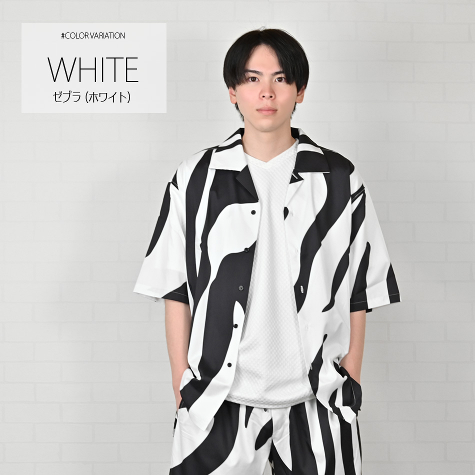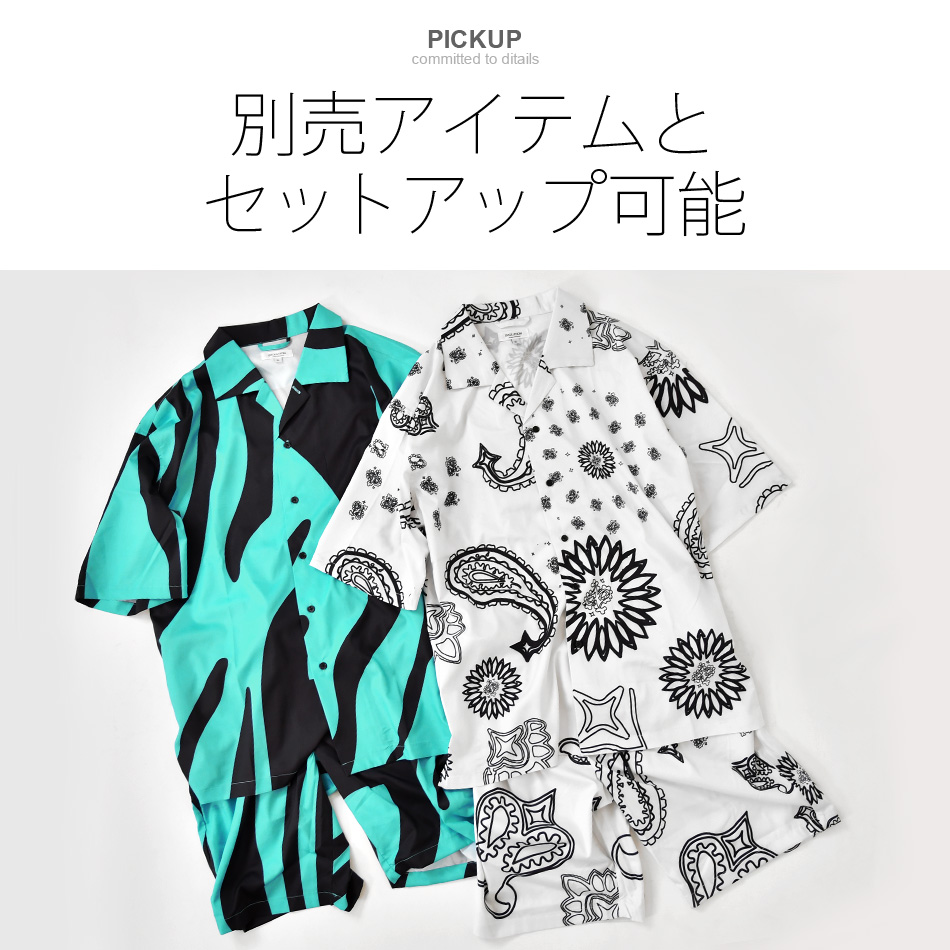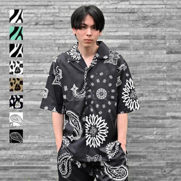 カジュアルシャツ メンズ 半袖 総柄 開襟シャツ セットアップ(別売) 白 黒 ホワイト ブラック グリーン 豹柄 ゼブラ ペイズリー M L XL LL 2L 51235 51237 51239