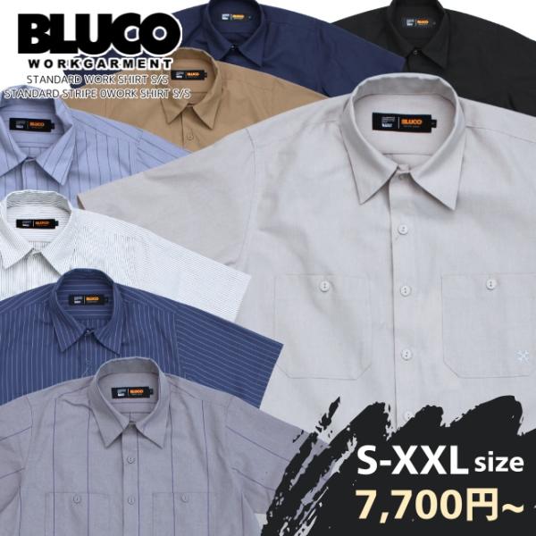 BLUCO ブルコ ワークシャツ 153-21-108 メンズ 半袖 無地 ストライプ スタンダードワークシャツ S〜2XL EM UNDER THROW イーエムアンダースロー