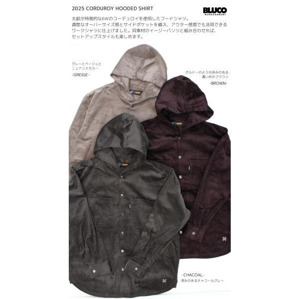 セール BLUCO ブルコ コーデュロイフードシャツ ワークシャツ メンズ 長袖シャツ 155-11-008 CORDUROY HOODED SHIRT 送料無料
