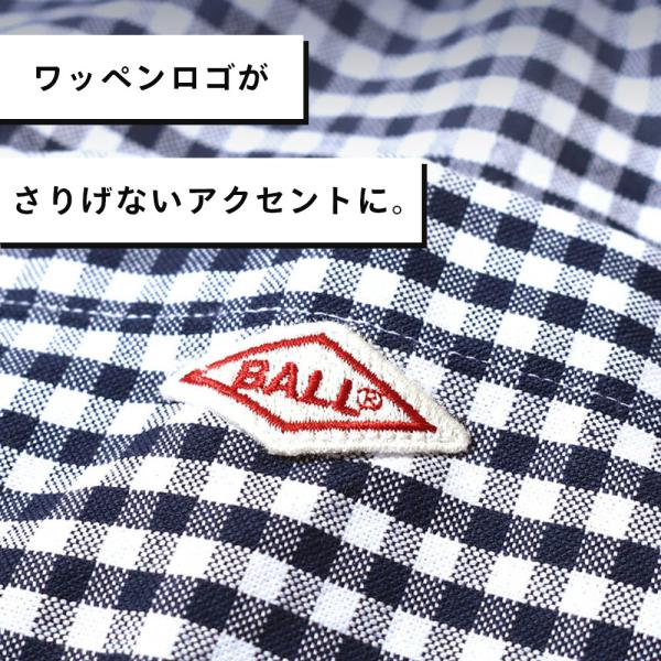シャツ メンズ オックス バンドカラー ギンガムチェック 綿100% オフィス カジュアル ロゴ おしゃれ BALL 33660