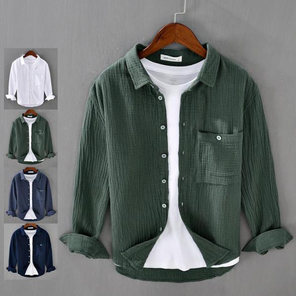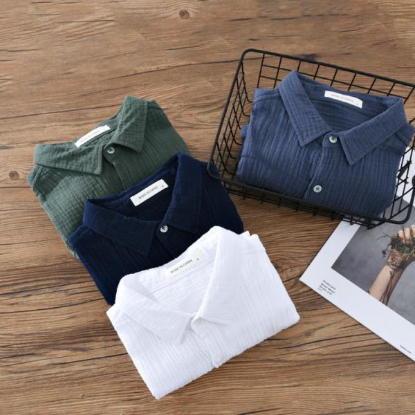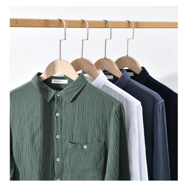 カジュアルシャツ メンズ コットンダブルガーゼ シャツ 長袖シャツ トップス ふんわり 100%綿 春 夏 秋 父の日