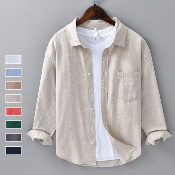 綿麻シャツ メンズ リネンシャツ リネンコットン シャツ カジュアルシャツ トップス 夏物 夏服 父の日