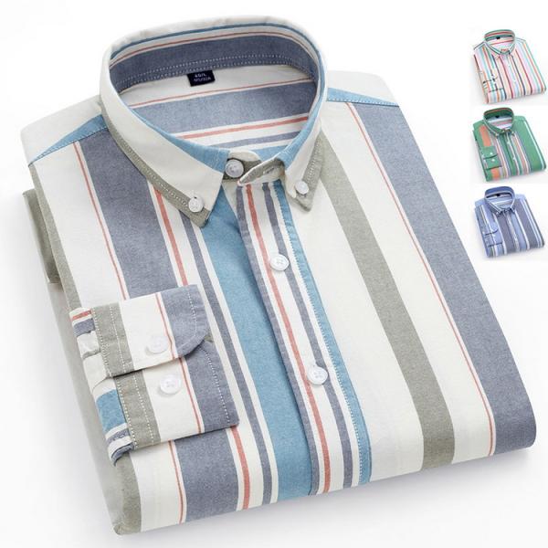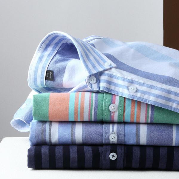 シャツ 100%綿 ボタンダウンシャツ ストライプシャツ カジュアルシャツ トップス 長袖 メンズ ファッション