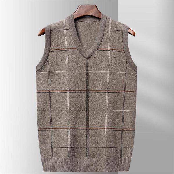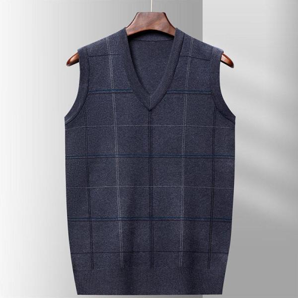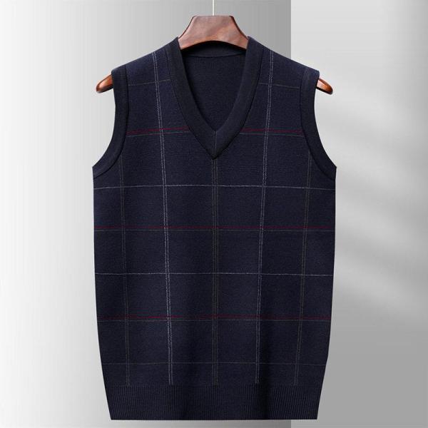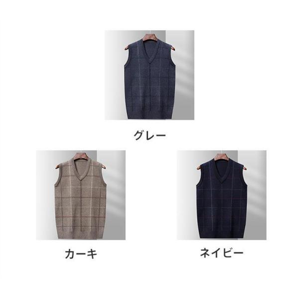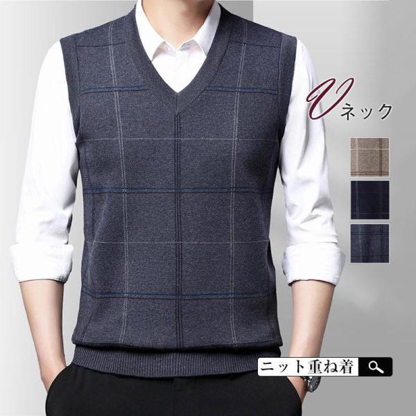 ニットベスト メンズ Vネック チェック柄 ノースリーブ ジレー ハイゲージニット チョッキ ビジネス ウォッシャブル 秋冬 フォーマル ゆったり
