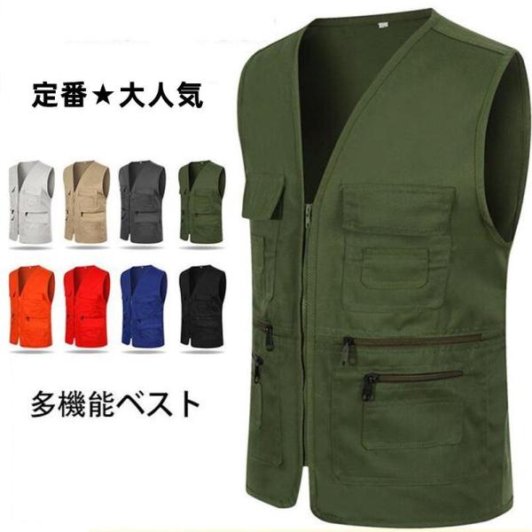 ミリタリーベスト 多ポケット フィッシングベストト カーゴ メンズ 多機能ベスト 無地 ゆったり 大きいサイズ 機能性 釣り 作業着 春夏秋