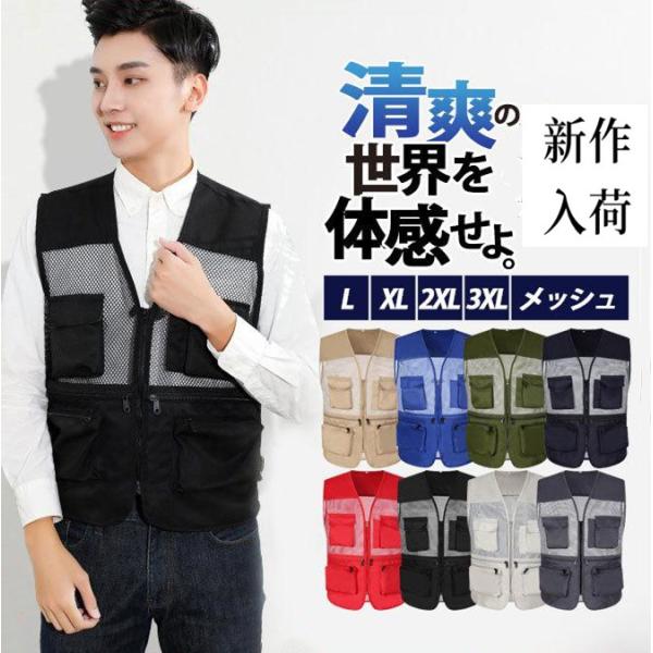 ベスト メンズ 春 夏用 メッシュベスト ポケット付き 作業着 農業 仕事 レディース アウトドア ウォーキング 登山 カメラマン ミリタリー 撮影用