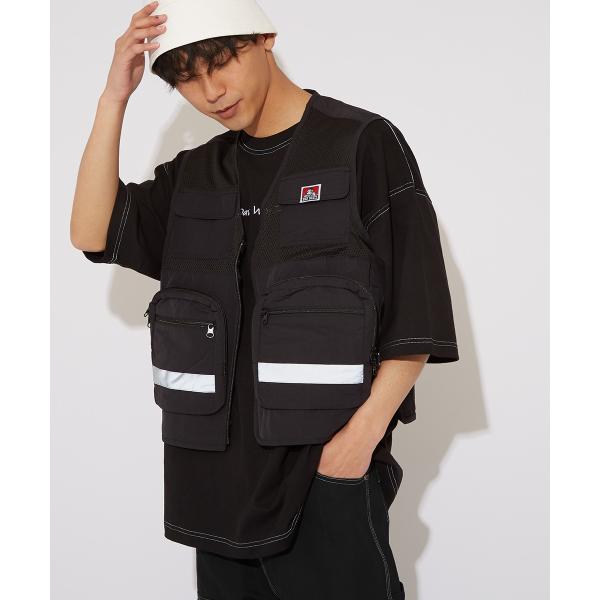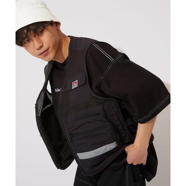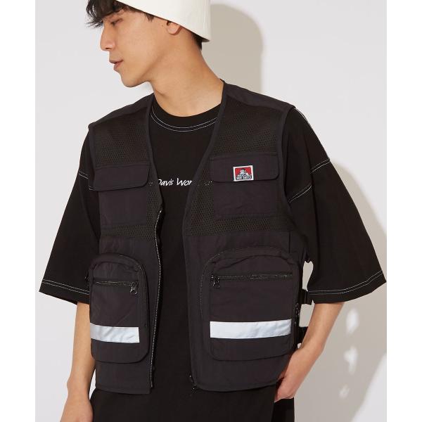 BEN DAVIS ベンデイビス ジレ ベスト メンズ ワークベスト 前開き 黒 ブラック メッシュ 大きいサイズ ストリート系 ストリートファッション