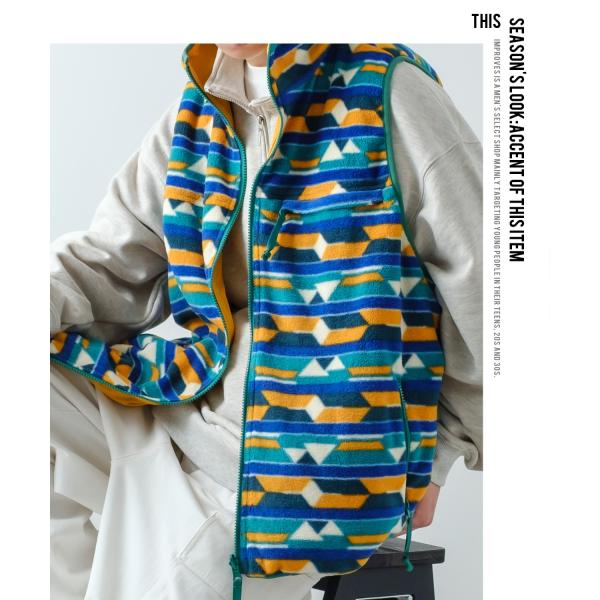ベスト メンズ マイクロ フリース リバーシブルベスト 幾何学模様 オーバーサイズ ゆったり 大きいサイズ アメカジ ストリート古着MIX スケーター アウトドア
