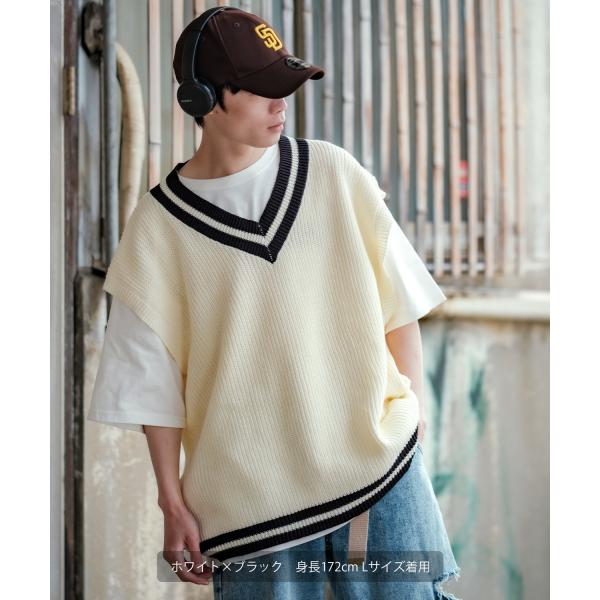 チルデン ニットベスト メンズ ハイバルキー 片畦 テニスニット クリケットニット あぜ編み ゆったり オーバーサイズ 大きめ きれいめカジュアル トラッド