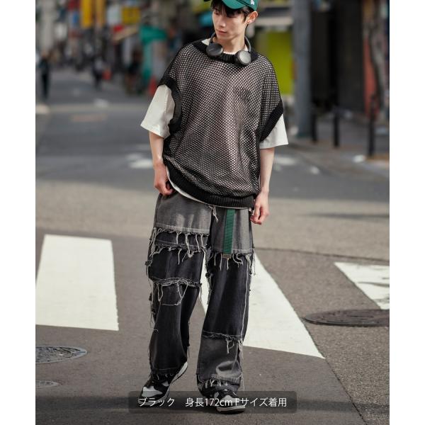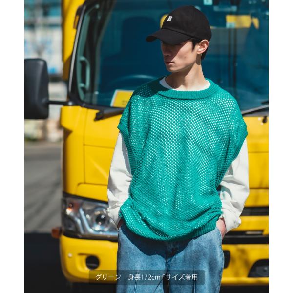 ベスト メンズ NULL ヌル 透かし編み レース編み メッシュ ビッグサイズ オーバーサイズ きれいめ カジュアル シンプル ノームコア ナチュラル
