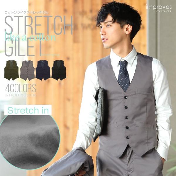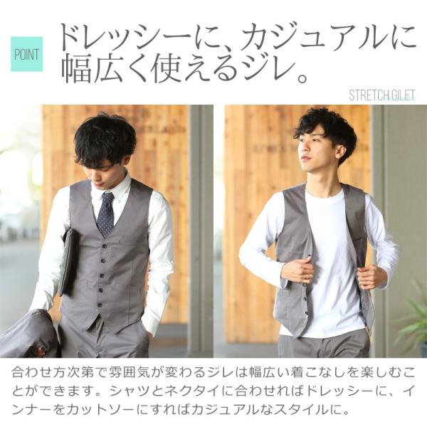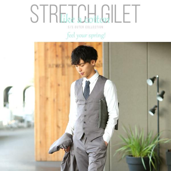 ベスト メンズ トップス ジレベスト ビジネス カジュアル スーツ 3ピース ストレッチ ビジカジ 前開き
