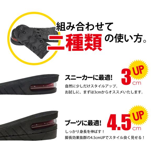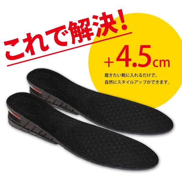 インソール 靴 中敷き 4.5cm 身長UP シークレットインソール 男女兼用 フリーサイズ エアクッション搭載 サイズ調整可 高さ 3cm / 4.5cm 両足 国内検品